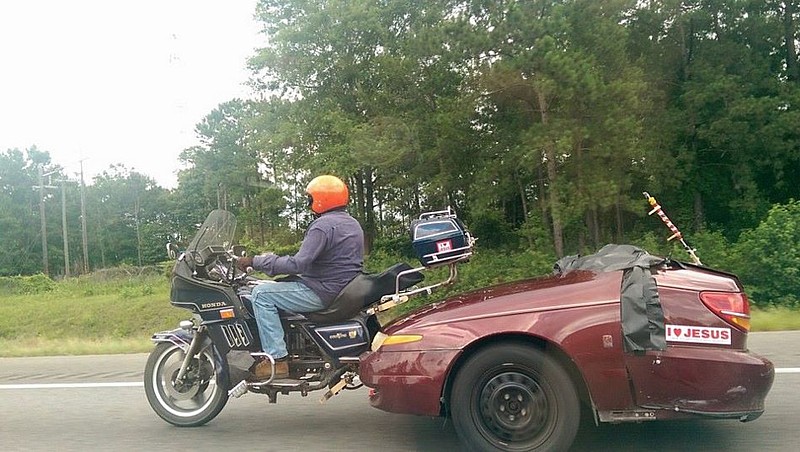 Attachment 48411 It's about ⅝ of an old Honda Gold Wing, and about ⅓ of a, what is that? A Buick? A Pontiac Grand Prix, maybe? And it's about 374 times more dangerous than it looks at first glance. It's a good thing he loves Jesus, methinks he's gonna have need of Him before too long. |