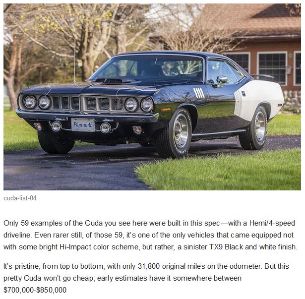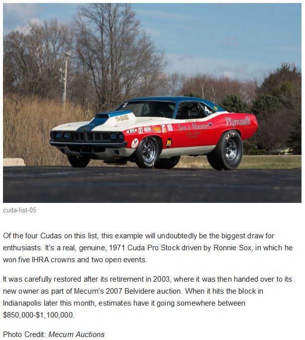 4 Historic Hemi Cudas Headed to Auction Attachment 56535 Attachment 56536 Attachment 56537 Attachment 56538 |